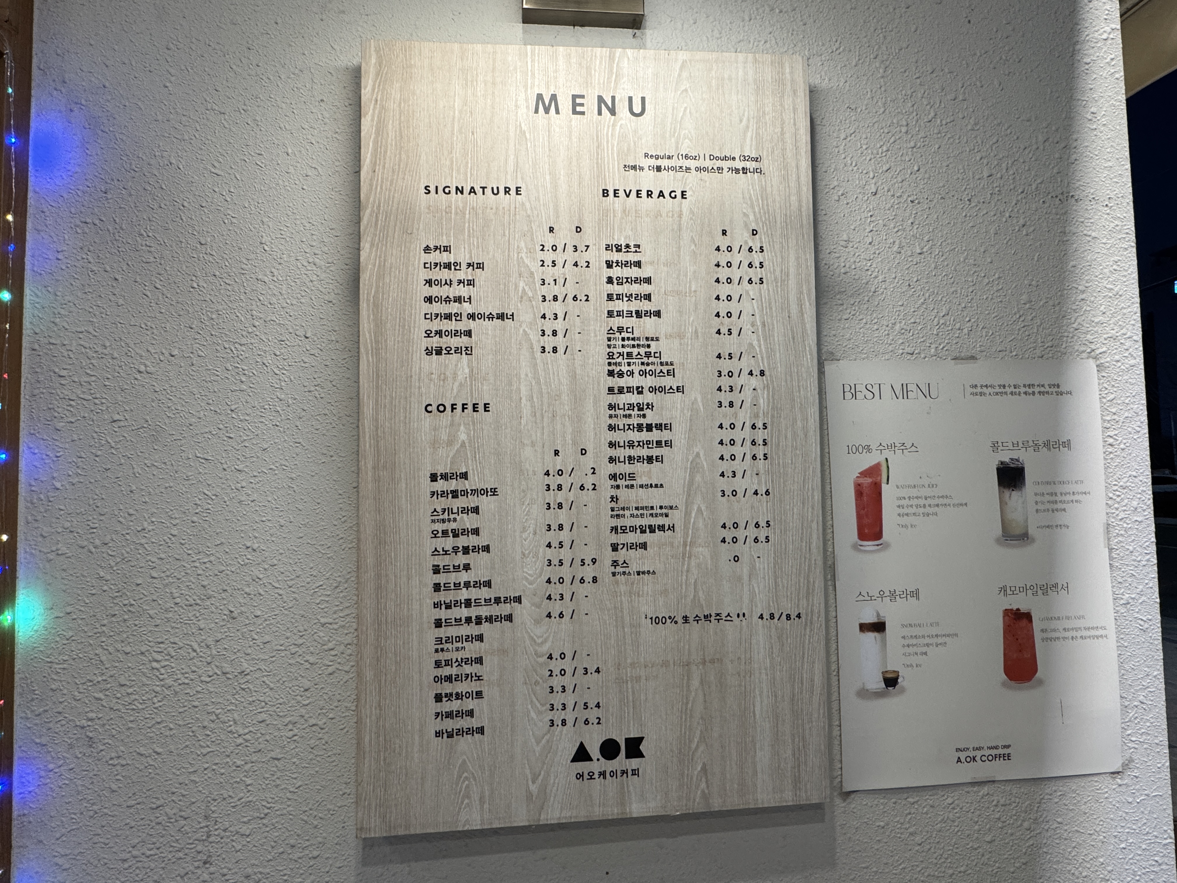 부산 명지에 있는 저렴이 카페 2탄으로, 천사나눔인증 카페, 어오케이 커피를 소개한다.