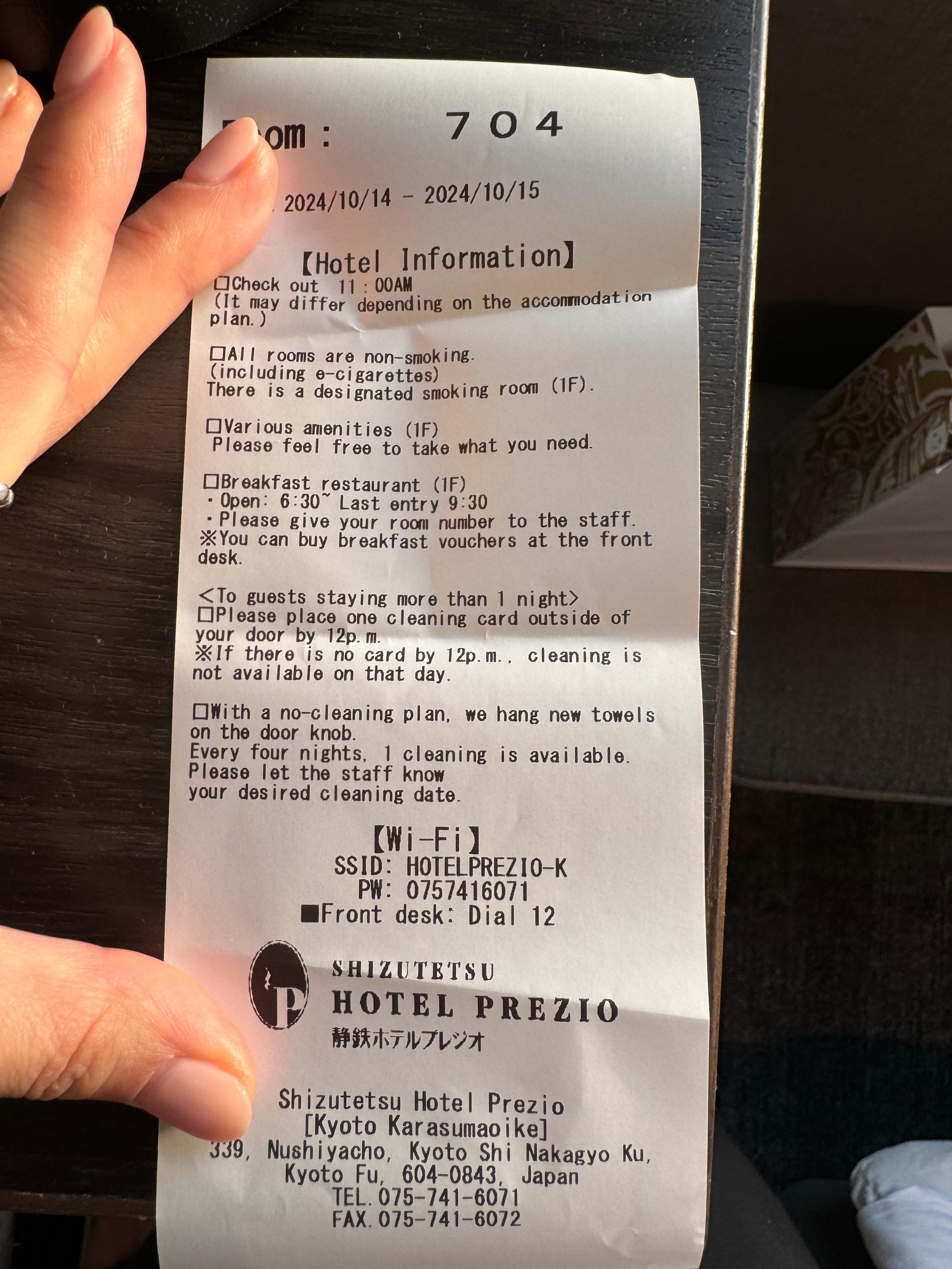 체크인을 하면 이렇게 receipt를 주는데, 여기 기본적인 정보는 다 있다.