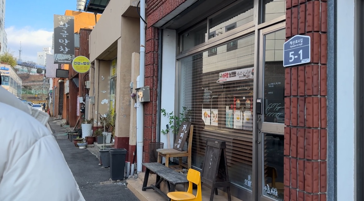 카페의 외관은 이렇다. 유리 철문이 단단하면서 편안한 느낌을 준다.